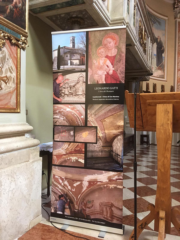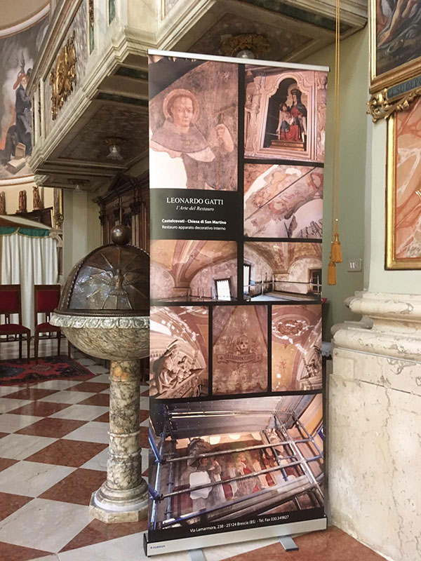 Roll-up Leonardo Gatti Restauro Ideazione roll-up Ideazione roll-up per esposizione in chiesa. Soggetto della grafica, le attuali gravi condizioni della Chiesa che sarà sottoposta a restauro. Cliente Studio Leonardo Gatti - www.leonardogattirestauro.it